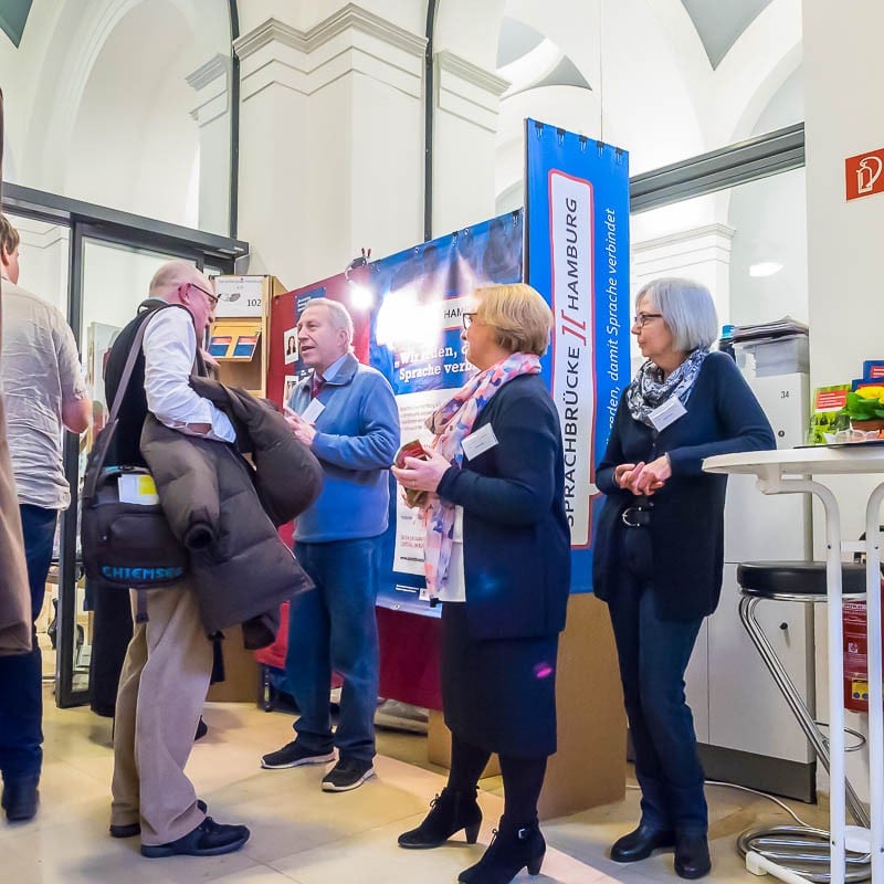 Anfang Februar veranstalten wir gleich zwei Informationsabende, an denen Interessierte in die Tätigkeiten als Sprachbrücken-Gesprächsleiter/in und in die Projektarbeit bei uns eingeführt werden. Wer dazukommen und erfahren möchte, wie und wo er sich bei Sprachbrücke-Hamburg e.V einbringen kann, melde sich bitte bei uns im Büro unter 040-2847 8998 oder kontakt@detsnet.de.