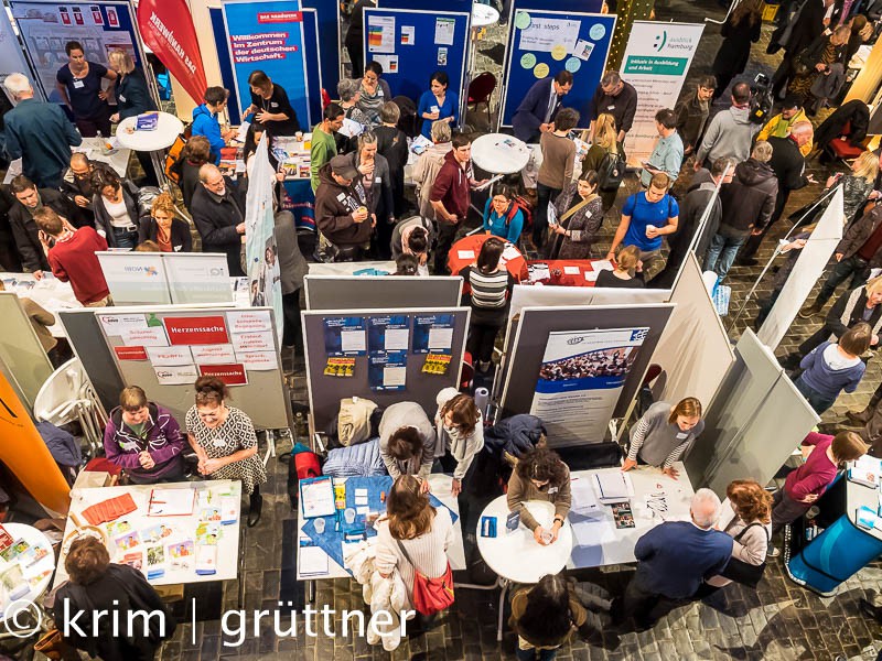 Beim ersten „Forum Flüchtlingshilfe“ in den Fischauktionshallen informierten am 18. Dezember Vereine und Ehrenamtliche über ihr Engagement für Flüchtlinge. Auch Sprachbrücke-Hamburg e.V. war auf dem „Markt der Möglichkeiten“ mit einem Infostand vertreten. Die Veranstaltung sollte dazu beitragen, die haupt- und ehrenamtliche Arbeit in Hamburg und auch deutschlandweit besser zu vernetzen und zu koordinieren. Dazu bot die äußerst gut besuchte Messe beste Rahmenbedingungen: Die VertreterInnen von Sprachbrücke-Hamburg e.V. konnten sich mit zahlreichen anderen Vereinen, Institutionen und den anwesenden Behördenvertretern austauschen und vernetzen. Vorträge und Workshops über die Flüchtlingssituation in Hamburg bildeten ein umfangreiches Programm für die vielen begeisterten BesucherInnen.