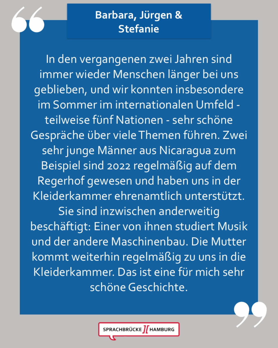 Es ist gut und eine Freude, dass es die Sprachbrücke gibt und Menschen, die das auf freiwilliger Basis ermöglichen, ohne eine Bezahlung dafür zu bekommen.