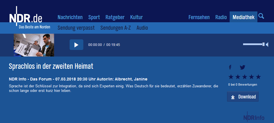 Hemmnisse und Hoffnungen beim Deutschsprechen – Beitrag auf NDR Info „Sprachlos in der zweiten Heimat“