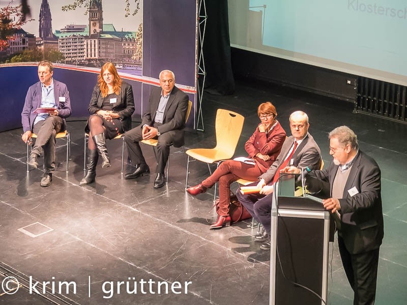 Das Bezirksamt Hamburg-Mitte lud am 20.1.2016 zur Integrationskonferenz „Unterstützung von Geflüchteten“ in die Klosterschule am Berliner Tor ein. An eine Podiumsdiskussion schlossen sich fünf Workshops und ein Markt der Möglichkeiten an. Dort war auch Sprachbrücke-Hamburg e.V. mit einem Stand vertreten.
