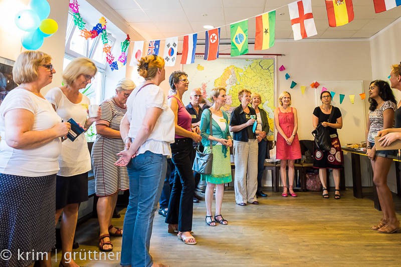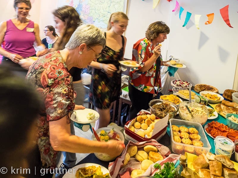 Das diesjährige Sommerfest der Sprachbrücke-Hamburg fand bei sonnigem Sommerwetter am 25. August im Westend in Wilhelmsburg statt. Liebevoll dekoriert von den Sprachbrücke-Hamburg-Praktikantinnen Tammana und Belinda luden ein Festraum und die Efeu-bewachsene Terrasse vor dem Kulturzentrum zu Geselligkeit ein: Ein Fragespiel im Freien sorgte für gute Laune und Auflockerung, bevor die zahlreichen Gäste das opulente Buffet kaperten, zu dem jeder etwas mitgebracht hatte. Zu späterer Stunde kehrten die Ehrenamtlichen mit einem Papierschiffchen als Dankesgabe und Andenken in alle Himmelsrichtungen heim.