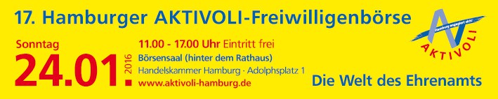 Die nächste Aktivoli-Freiwilligenbörse findet am 24.01.2016 statt. Wir sind dabei! Unser Stand befindet sich am Eingang zu Saal 1 und hat die Nummer 102. Wir freuen uns auf viele Interessenten und Gespräche.
